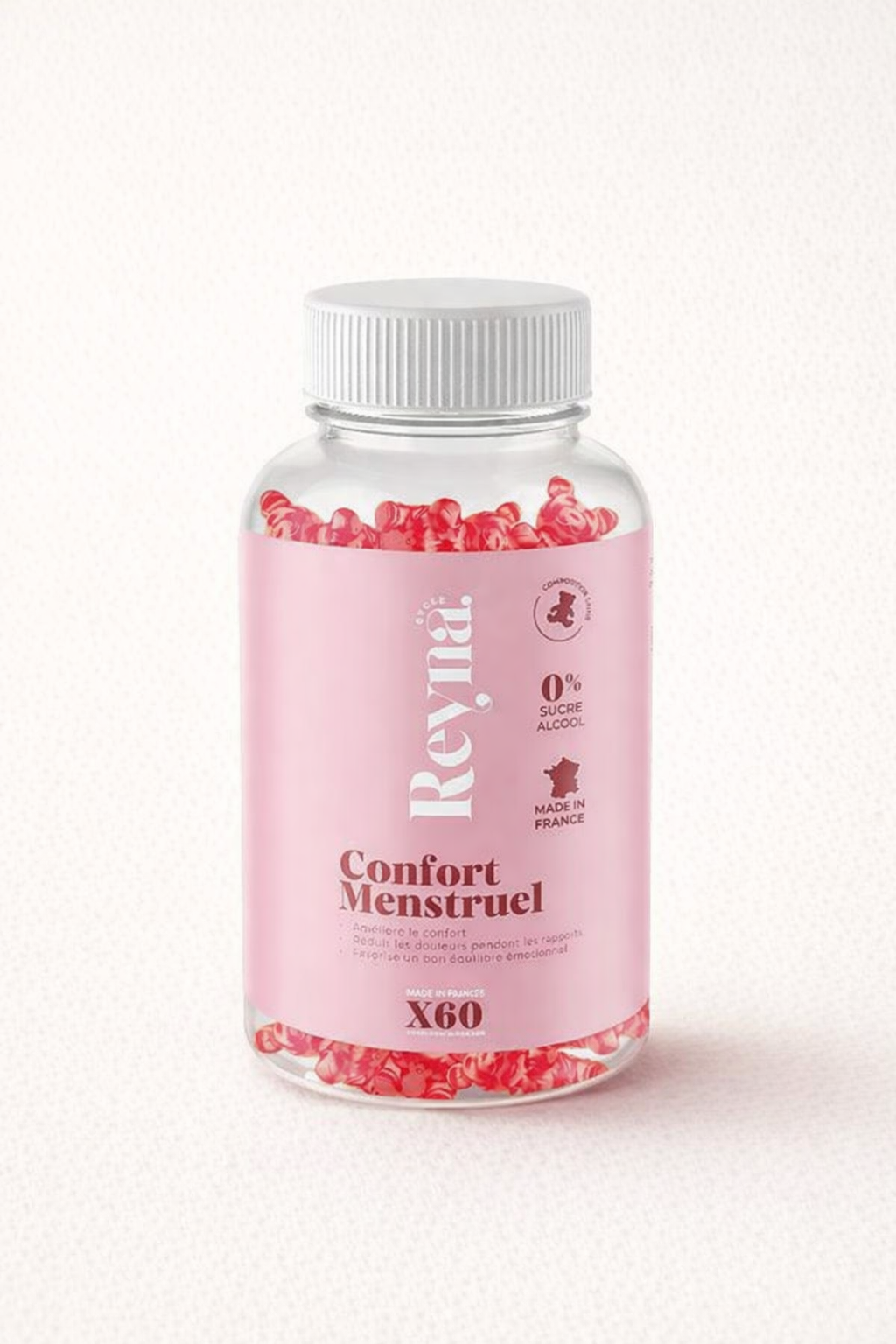 Sans sucre, sans alcool, fabriqué en France, Reyna Cycle s’intègre facilement à votre quotidien. Chaque gummies est conçue pour être agréable à prendre, sans contrainte, ni culpabilité.